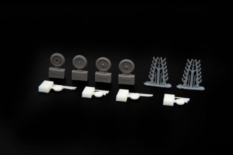 resin parts: yes (exhausts; undercarriage wheels – two types), wheel wells plugs (Omask)