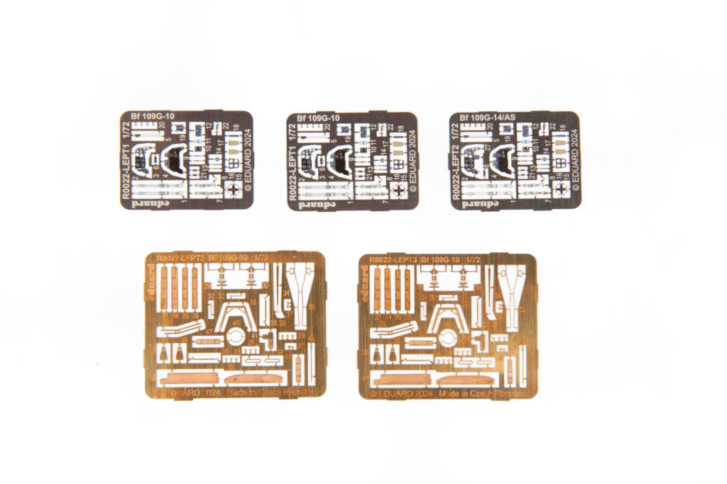The box contains plastic sprues for two complete kits, Bf 109G-10 version produced in Erla facory in Leipzig or Bf 109G-10 from Wiener Neustädter Fabrik or Bf 109G-10 or Bf 109G-14/AS from Messerschmitt factory in Regensburg.