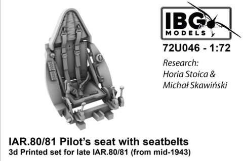72U046 – 1/72 – Pilot’s Seat with Seatbelts for I.A.R. 80/81 (Late, armored, used from mid 1943)