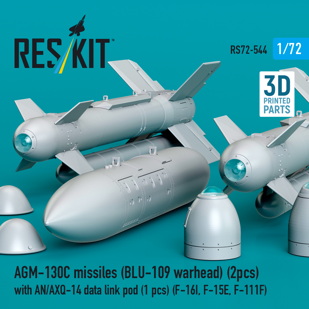 Reskit AGM-130C missiles (BLU-109 warhead) with AN/AXQ-14 data link pod (1 pcs) (F-16I, F-15E, F-111F) (3D Printed) (1/72) RS72-0544