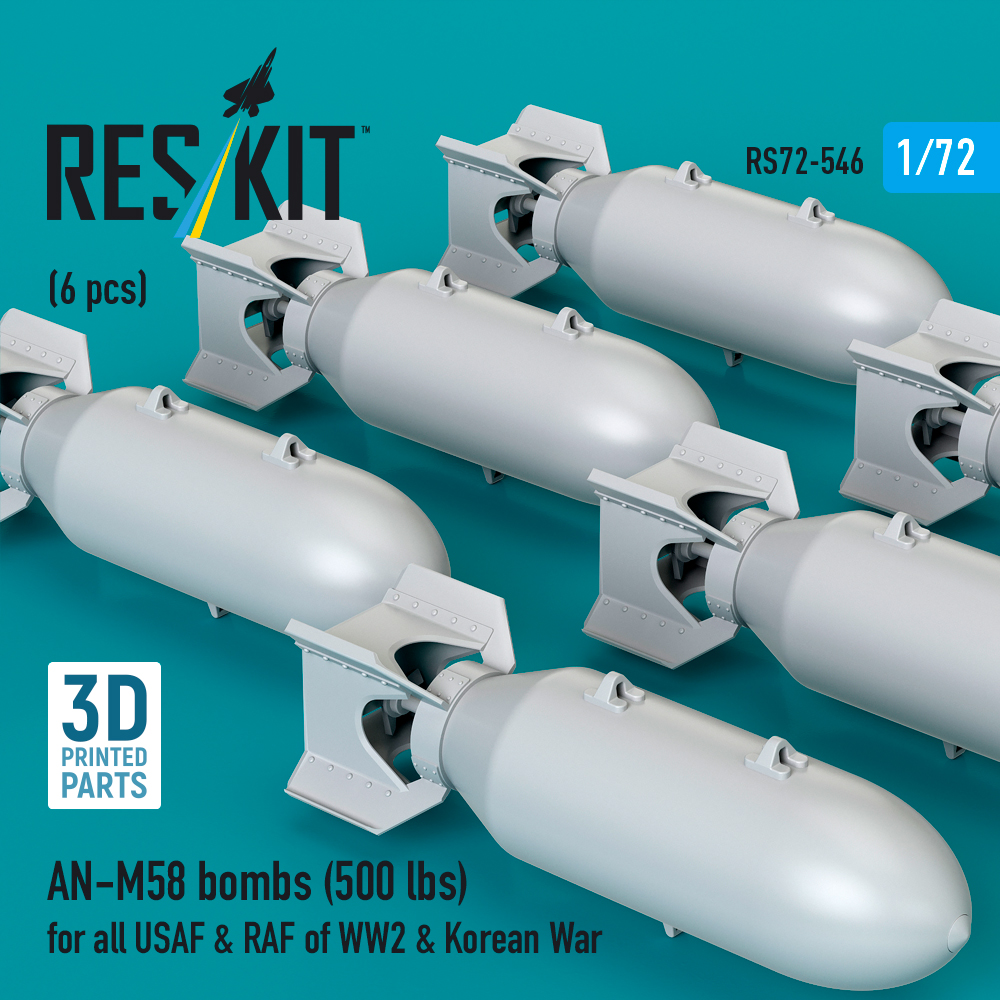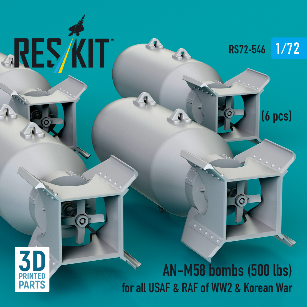Reskit AN-M58 bombs (500 lbs) for all USAF & RAF of WW2 & Korean War (3D Printed) (1/72) RS72-0546