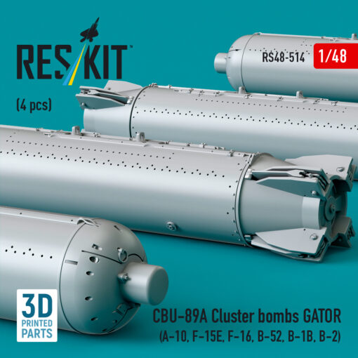 Reskit CBU-89A cluster bombs GATOR (4 pcs) (3D Printed) (1/48) RS48-0514