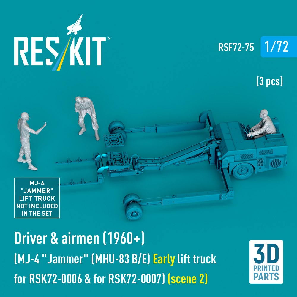 Reskit Driver & airmen (1960+) (MJ-4 “Jammer” (MHU-83 B/E) Early lift truck for RSK72-0006 & for RSK72-0007) (scene 2) (3D Printed) (1/72)