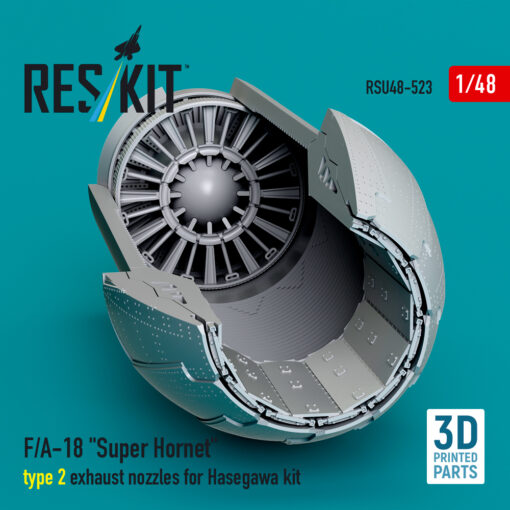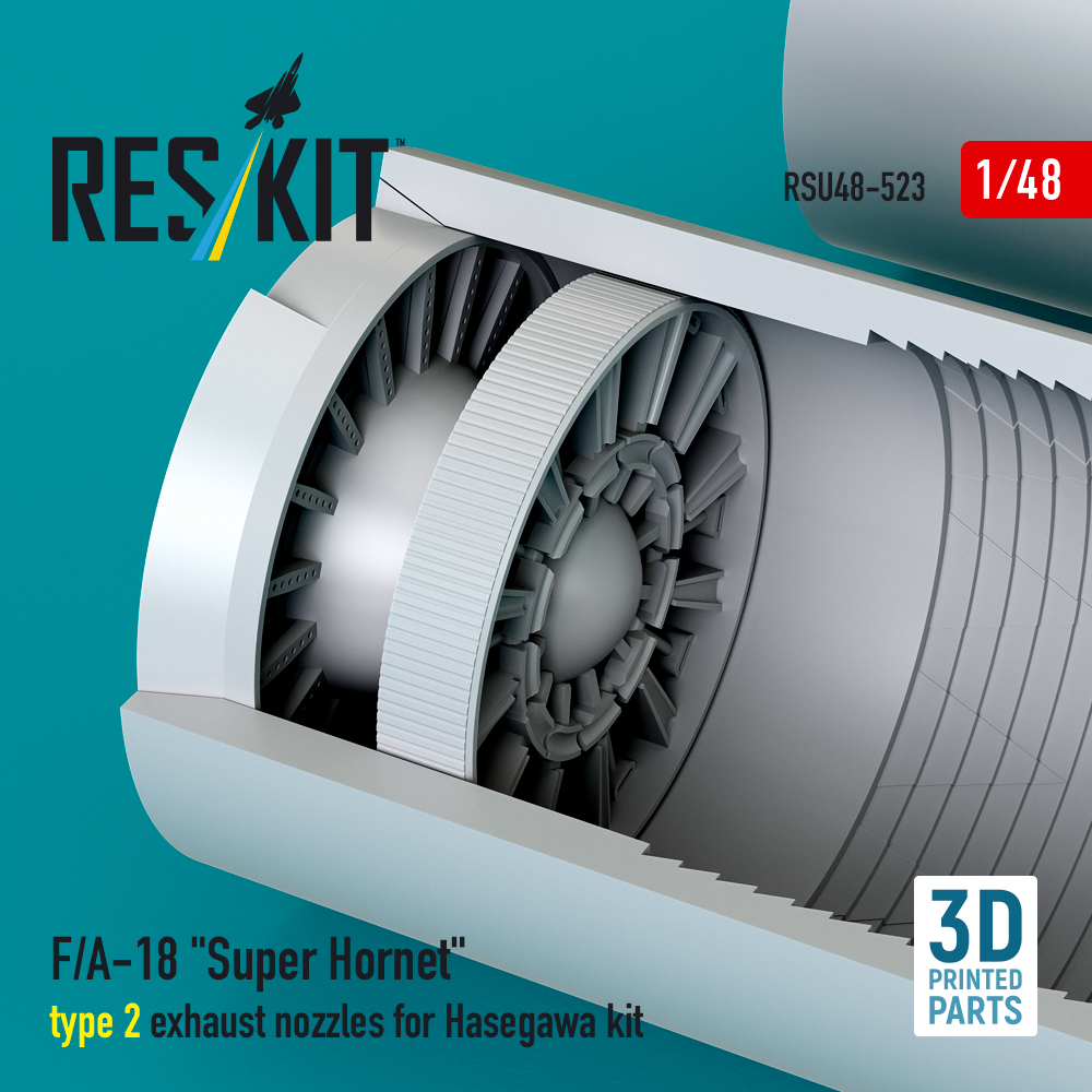 Reskit F/A-18 “Super Hornet” type 2 exhaust nozzles for Hasegawa kit (3D Printed) RSU48-0523