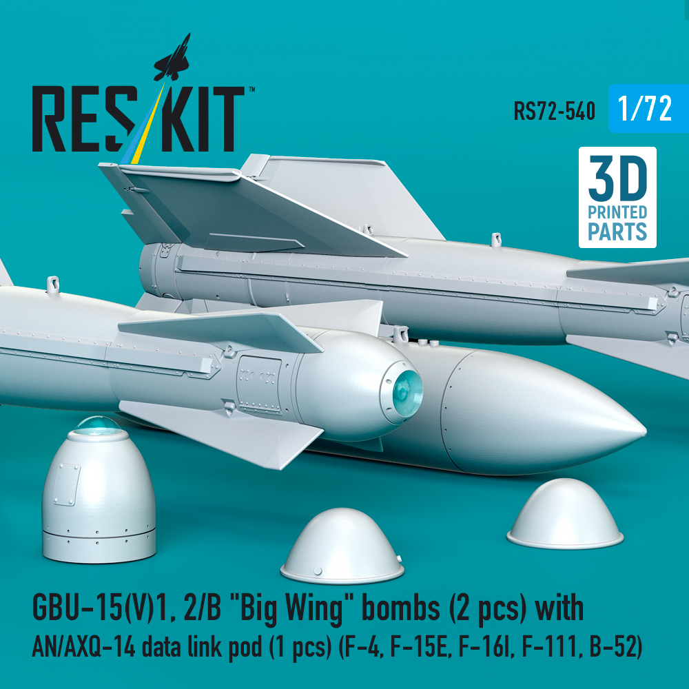 Reskit GBU-15(V)1,2/B “Big Wing” bombs with AN/AXQ-14 data link pod (1 pcs) (F-4, F-15E, F-16I, F-111, B-52) (3D Printed) (1/72) RS72-0540