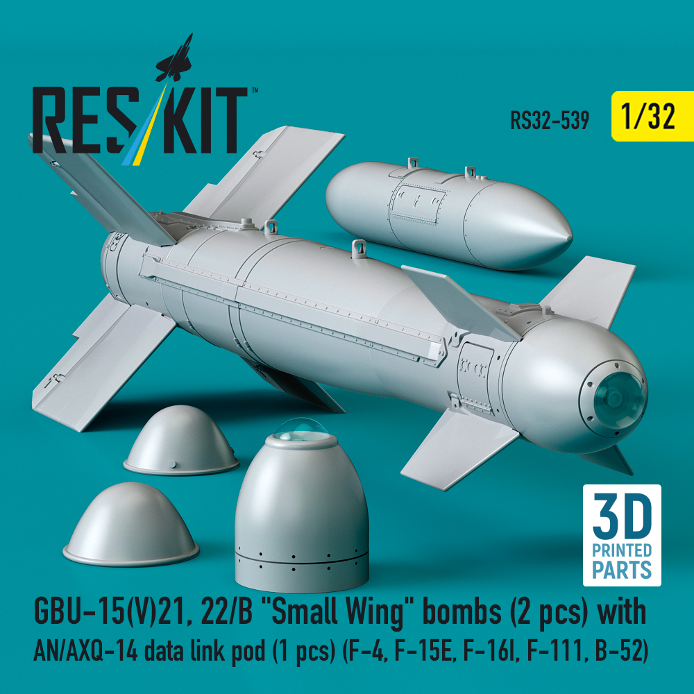 Reskit GBU-15(V)21, 22/B “Small Wing” bombs with AN/AXQ-14 data link pod (1 pcs) (F-4, F-15E, F-16I, F-111, B-52) (3D Printed) (1/32) RS32-0539