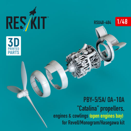Reskit PBY-5/5A/ OA-10A “Catalina” propellers, engines & cowlings (open engines bay) for Revell/Monogram/Hasegawa kit (1/48) RSU48-0484
