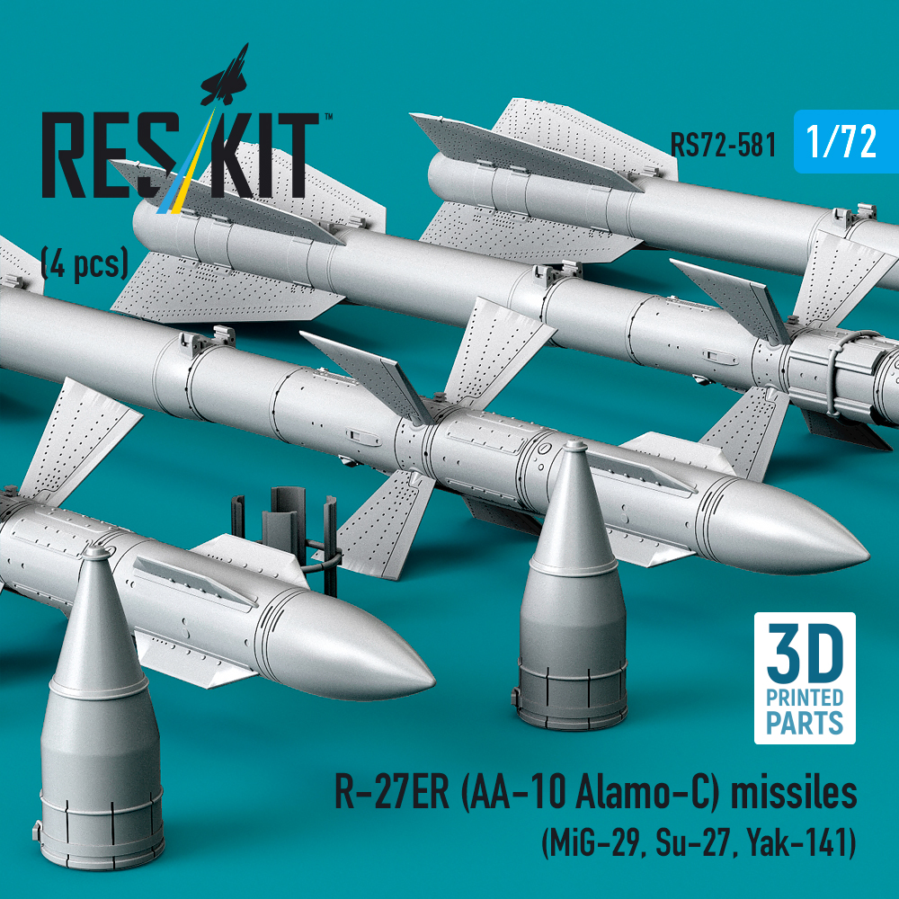 Reskit R-27ER (AA-10 Alamo-C) missiles (4 pcs) (MiG-29, Su-27, Yak-141) (3D Printed) (1/72)