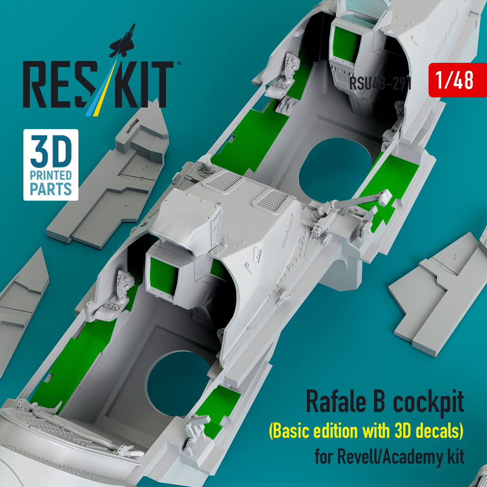 Reskit Rafale B cockpit (Basic edition with 3D decals) for Revell/Academy kit (3D Printed) (1/48)