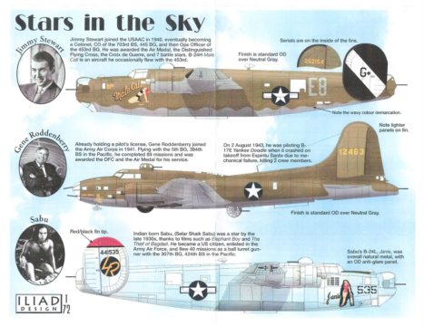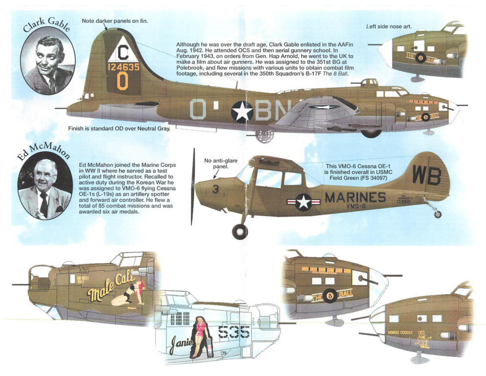The photos of Jimmy Stewart, Sabu, Gable, Roddenberry, and McMahon are a wonderful touch, giving the modeller real faces behind the aircraft.