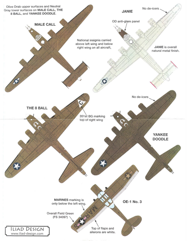 Visually diverse aircraft: OD/NG, natural metal, Pacific and European theatres